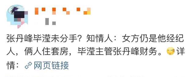 如果现在出现在聊天记录里的萌萌和收款人真的是出轨风波里的经纪人毕滢,可想而知,张丹峰此前说经纪人毕滢辞职了的说法,便不攻自破。张丹峰和毕滢不仅没有分开,还恢复了毕滢经纪人的职位,而且把财政大权也交给了毕滢,而不是妻子洪欣。究竟是张丹峰撒谎,继续和毕滢借着经纪人的名义,维持着不正当关系,还是另有隐情,大家不得而知。