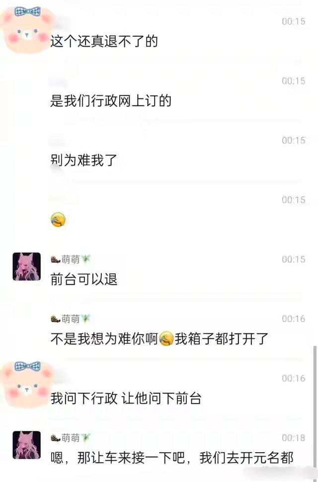 紧接着从放出聊天记录可以发现,毕滢因为不满意直播公司没有提供有套房的酒店而表示不住了,并要求对接人退掉酒店并重新订有套房的酒店。哪怕直播公司对接人给张丹峰和毕滢安排了附近最好的酒店。在商量无果的情况下,毕滢直接果断的订了有套房的酒店,称给对方发票报销。