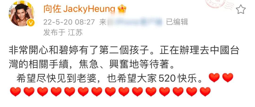 从2022年5月20日向佐官宣郭碧婷怀二胎后,女方就一直没有在公开场合露面。