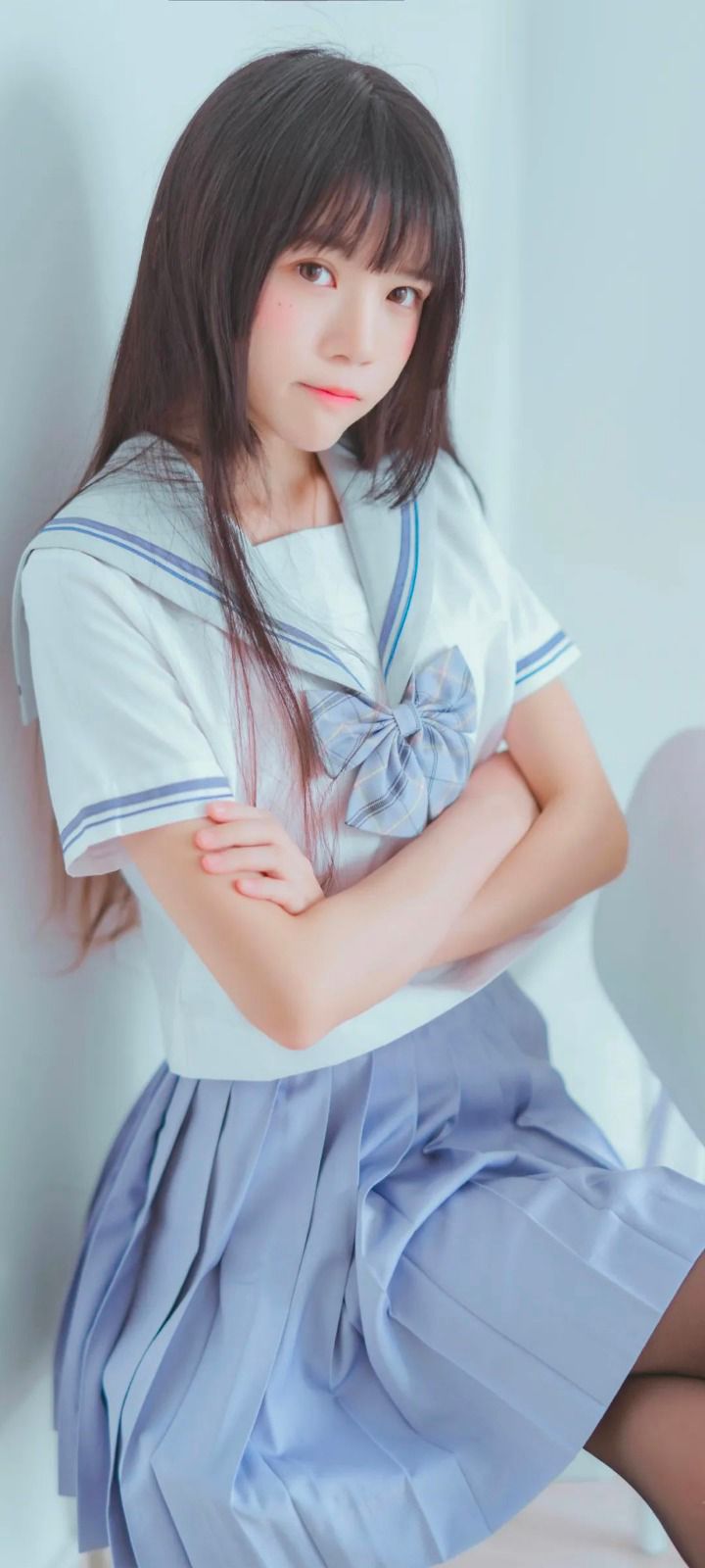 美腿女神 唯美 黑丝JK装 全面屏高清壁纸